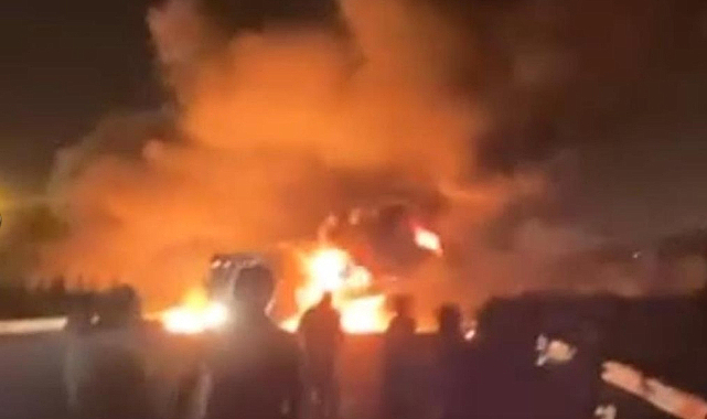 Şanlıurfa'da akaryakıt yüklü iki tankerin çarpıştığı kazada yangın çıktı, sürücülerden biri hayatını kaybetti.