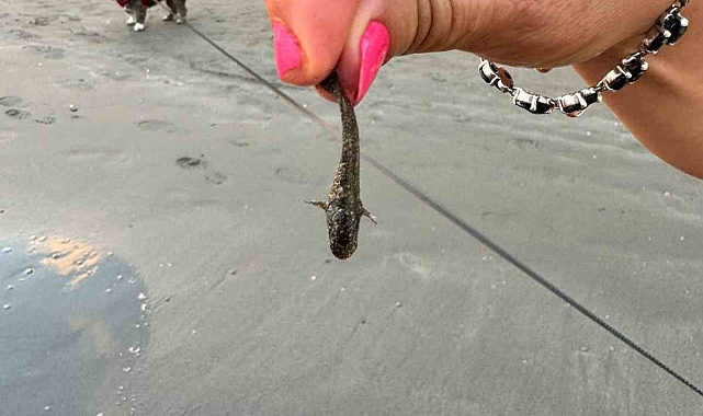 Adana’nın Karataş ilçesinde zehirli dikenli çizgili kedi balığı görüldü.