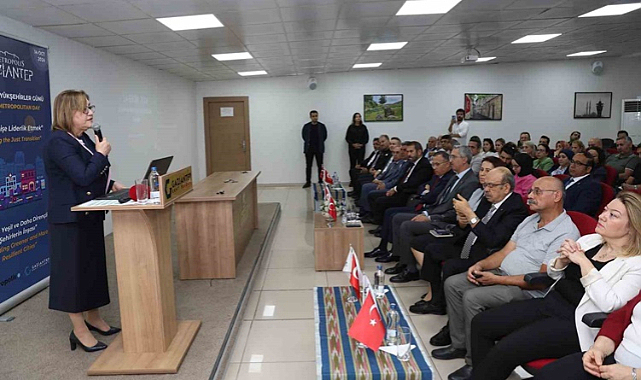 “Adil Geçişe Liderlik Etmek” temasıyla düzenlenen programda, daha yeşil ve dirençli şehirlerin inşası temel gündem olarak belirlendi. Gaziantep’in yeşil dönüşüm yolculuğu; yeşil bir ufuk, yeşil istihdam ve güçlü toplumlar alt başlıklarıyla şekillendi. Başkan Fatma Şahin, adaletin her şeyin başı olduğunu vurgulayarak, “’İşi ehline ver, adil davran’ diyen bir medeniyetten geliyoruz. Adaletin ne kadar önemli olduğunu biliyoruz. Bilim ve akıl yolumuzu aydınlatıyor. Bu başlıklar Gazi Mustafa Kemal Atatürk’ün bize bıraktığı en büyük manevi miraslardır. Bizim gibi yöneticilerin sürekli bilimsel yaklaşması çok mühim” ifadelerini kullandı.