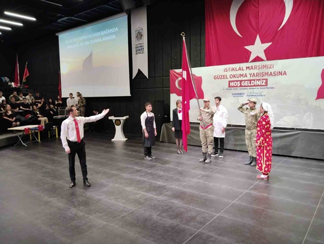 İstiklal Marşının kabul edilişinin 103’üncü yıl dönümü nedeniyle Şahinbey Belediyesi tarafından İstiklal Marşını Güzel Okuma Yarışması düzenlendi. Yarışmaya katılan anaokulu, ilkokul, ortaokul ve lise öğrencileri, büyük bir öz güvenle sahneye çıkarak okuma ve hitabet hünerlerini sergiledi. Şahinbey Kongre ve Sanat Merkezi’nde düzenlenen yarışmayı kurum müdürleri, okul yöneticileri, öğretmenler ve öğrenciler izledi.Yarışmanın jüri üyeliğini; Gaziantep Üniversitesi Türk Dili Edebiyatı Öğretim Görevlisi Murat Kılıç, Şahinbey Milli Eğitim Türk Dili ve Edebiyatı Öğretmenleri, Saip Can Mantar, Tarık Durmuşoğlu, Hilal Yazıcı, Şahinbey Milli Eğitim Türkçe Öğretmenleri Elif Seçen ve Şule Uzun Öztürk yaptılar.
