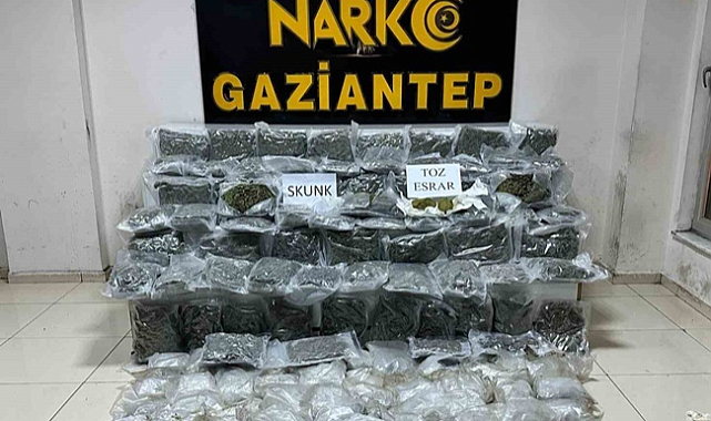 Gaziantep İl Emniyet Müdürlüğüne bağlı Narkotik Suçlarla Mücadele Şube Müdürlüğü ekipleri Cumhuriyet Başsavcılığı koordinesinde uyuşturucu operasyonları yaptı. Son bir hafta içerisinde yapılan operasyonlarda, 86 kilo 650 gram skunk, 37 kilo 200 gram metamfetamin, 482 gram toz esrar ele geçirildi. Olay ilgili 4 şüpheli gözaltına alındı.Şüpheli şahıslar sevk edildiği adli makamlarca tutuklanarak cezaevine gönderildi.