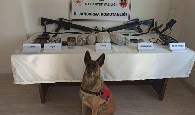 Gaziantep İl Jandarma Komutanlığı ekipleri, uyuşturucu ve uyarıcı madde ile mücadeleye yönelik Cumhuriyet Başsavcılığı koordinesinde çalışma yaptı. Yapılan çalışmalar neticesinde Nurdağı ilçesinde ikamet eden S.Ş., S.Ş. ve Ş.Ş isimli şahısların uyuşturucu madde imal ve ticareti yaptığı tespit edildi. Şüpheli şahısların ait ikamet adresine yapılan aramalarda ise 4 kilo 75 gram skunk cinsi uyuşturucu madde, 2 adet dijital hassas terazi, 1 adet uyuşturucu madde öğütme aparatı, 2 adet uyuşturucu kullanma aparatı, 1 adet ekili vaziyette skunk bitkisi, 2 adet otomatik av tüfeği, 40 adet av tüfeği fişeği, 5 adet av tüfeği şarjörü, 3 adet cep telefonu ve 1 adet mayın dedektörü ele geçirildi.