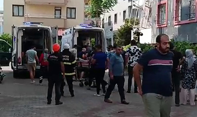 Hatay’da dış cephe mantolama işi yapan inşaat işçilerini taşıyan iskelenin ipi koptu, iskeleden düşen 2 işçi yaralandı.