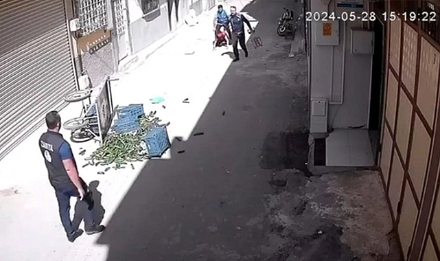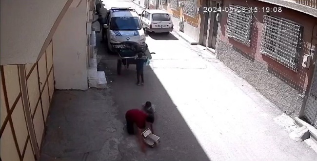 CHP’li Kilis Belediyesinde görev yapan zabıta ekipleri, mahalle arasında seyyar satıcılık yapan bir kişi ile 2 çocuğu kovaladı. Zabıta ekipleri, terazisini alarak kaçmaya çalışan seyyar satıcıyı arkasından koşarak yakaladı. Ekipler, satıcıyı yere yatırarak zorla terazisini aldı. Bu esnada, satıcının yanındaki çocukların tuttuğu salatalık yüklü seyyar araba devrildi.
