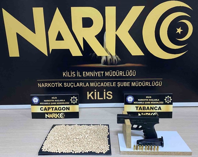 Kilis Emniyet Müdürlüğü ekiplerince, kent genelinde genel asayiş olaylarının önlenmesi ve şüpheli şahısların tespit edilerek yakalanmasına yönelik geniş çaplı denetimler yapıldı. Kilis Otogarı’nda yapılan denetimlerde, şüphe üzerine durdurulan H.Ö. isimli şüpheliye yapılan üst aramalarında 2 bin 986 adet uyuşturucu hap, 121 ruhsatsız tabanca ve 9 adet 7.65 mermi ele geçirildi. Ekiplerce gözaltına alınan şüpheli H.Ö. çıkarıldığı mahkemece tutuklanarak cezaevine gönderildi.