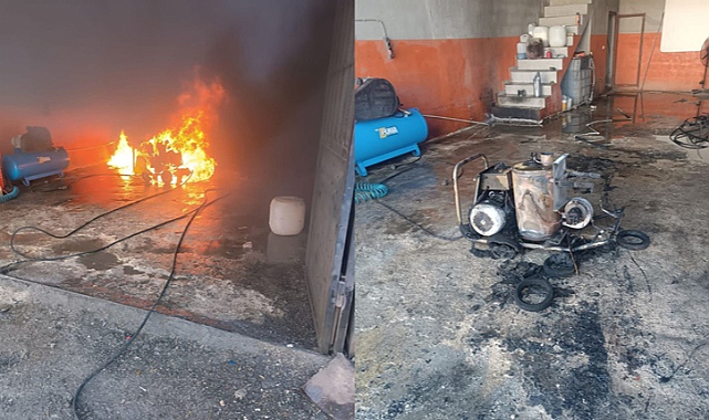 Olay, Gaziantep’in Nurdağı ilçesine bağlı sanayi sitesinde öğle saatlerinde meydana geldi. İddiaya göre, bir işyerinde bulunan oto yıkamada kullanılan kompresör, traktör yıkama esnasında alev alması sonucu patladı. Makinenin alev aldığını fark eden işçiler hemen dışarı koştu. Çevredeki vatandaşların ihbarı üzerine olay yerine 112 sağlık, polis ve itfaiye ekipleri sevk edildi. Olay yerine gelen itfaiye ekipleri makineyi söndürdü. Diğer yandan meydana gelen patlamada maddi hasar meydana gelirken ölen veya yaralanan kimse olmadığı öğrenildi.