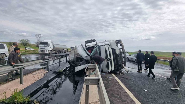 Edinilen bilgiye göre kaza, sabah saatlerinde Şanlıurfa -Mardin karayolu üzerinde yaşandı. Sürücüsünün ismi öğrenilemeyen 41 R 7710 plakalı tır, iddiaya göre kontrolden çıkarak devrildi. Sürüklenen tır, bariyerlere çarparak dururken sürücü kabinde sıkıştı. Olay yerinden geçen Şanlıurfa Büyükşehir Belediye Başkanı Zeynel Abidin Beyazgül, aracından inerek sıkışan sürücünün yanına gitti. Sağlık ve itfaiye ekipleri gelene kadar sürücü ile konuşan Beyazgül, bilincini açık tutmaya çalıştı.